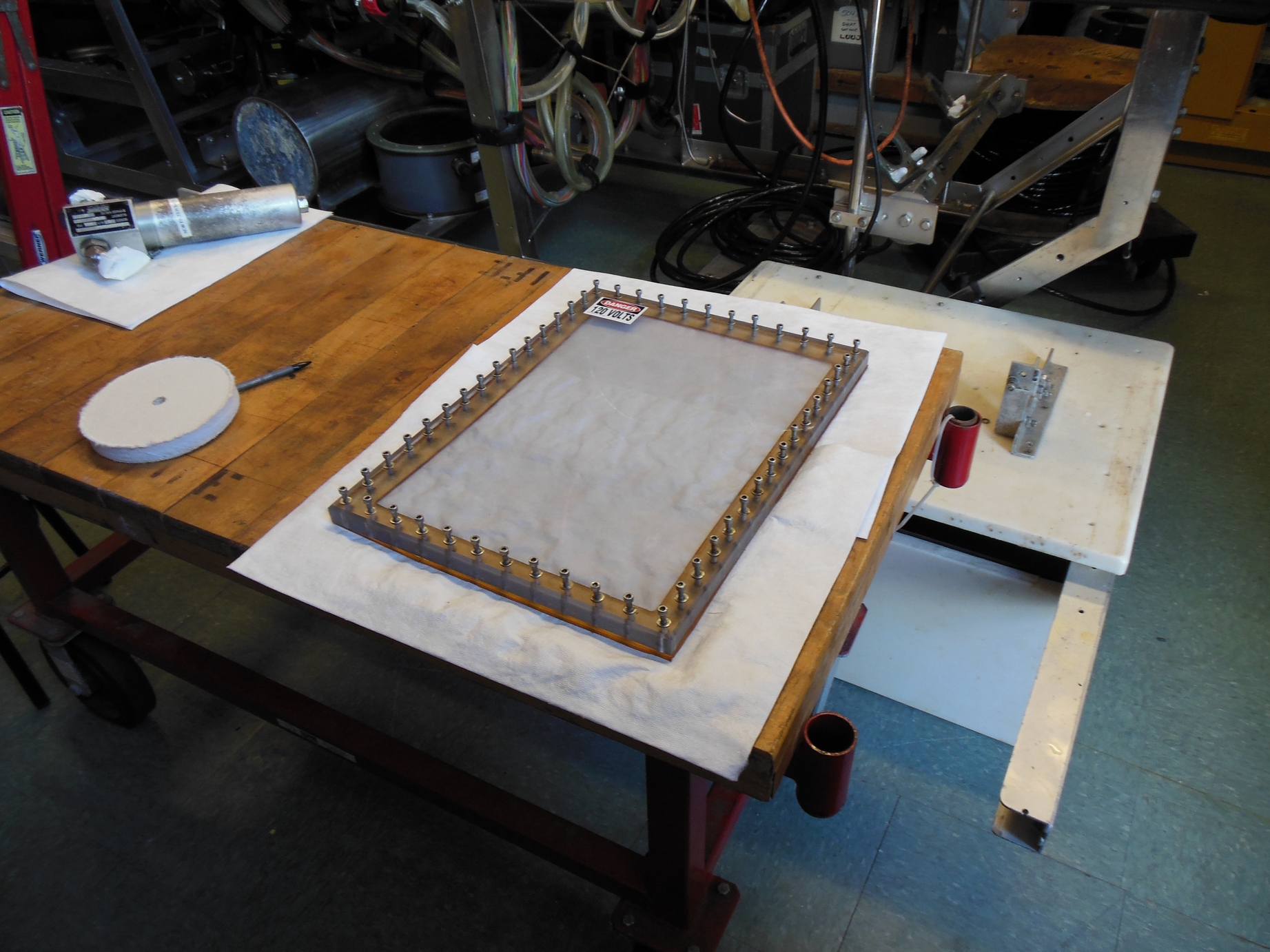 This plate has been removed for servicing of the electronics that it covers. The cavity below it would be filled with oil when in use.